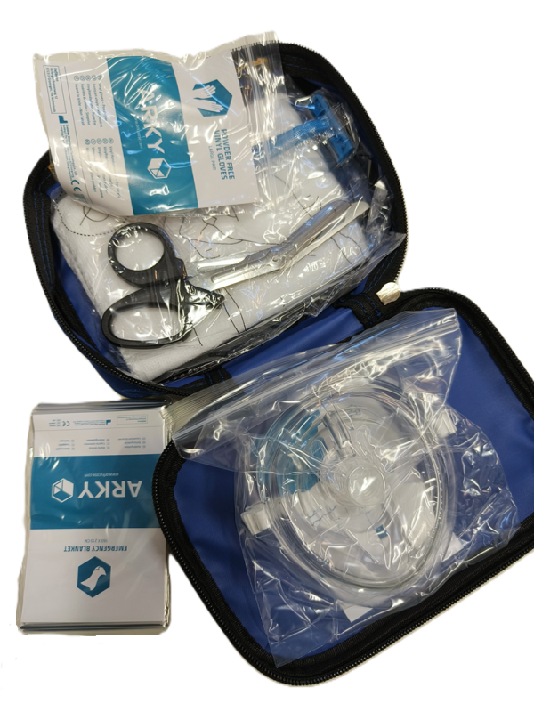 Automatisk hjertestarter inkl. batteri og elektroder. Der medfølges desuden udstyrssæt og AED klistermærker