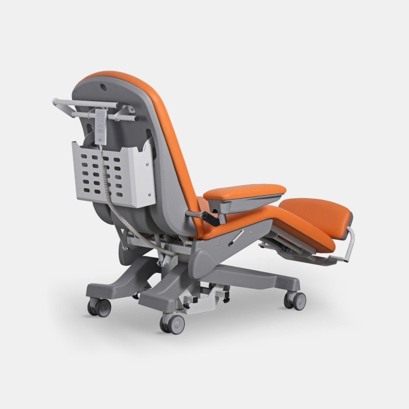 Multifunktionel behandlingsstol til længerevarende behandlinger som dialyse, kemoterapi, bloddonation. - Også ideel som blodprøvetagningsstol og til div. patientundersøgelser.