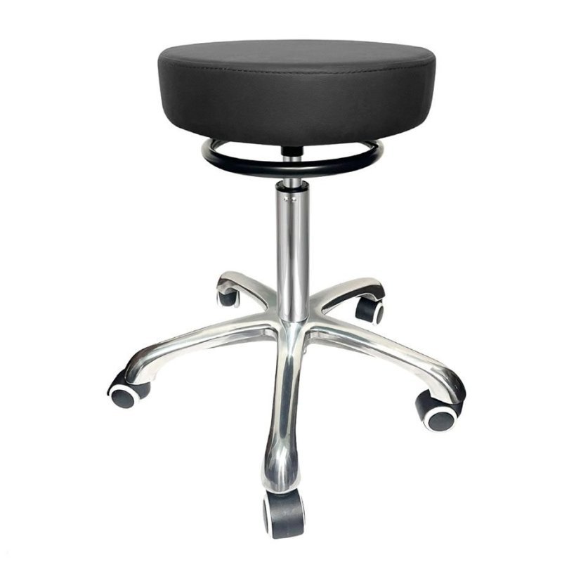 Ergonomisk og stilfuld taburet med slidstærkt PU-læder, som giver høj komfort og er nem at rengøre. Sædet har en diameter på 34,5 cm og en blød pude på 80 mm for optimal støtte. Højden justeres trinløst fra 52 til 72 cm via en praktisk ringudløser hele vejen rundt (SGS-certificeret gaslift, klasse 3). Den stabile base på Ø 52 cm sikrer god balance, mens det 360° drejelige sæde giver maksimal bevægelsesfrihed. Maksimal belastning: 160 kg. Vægt: 4,7 kg.