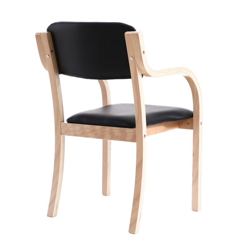 - Stolen har en robust træramme med en komfortabel polstret ryg.