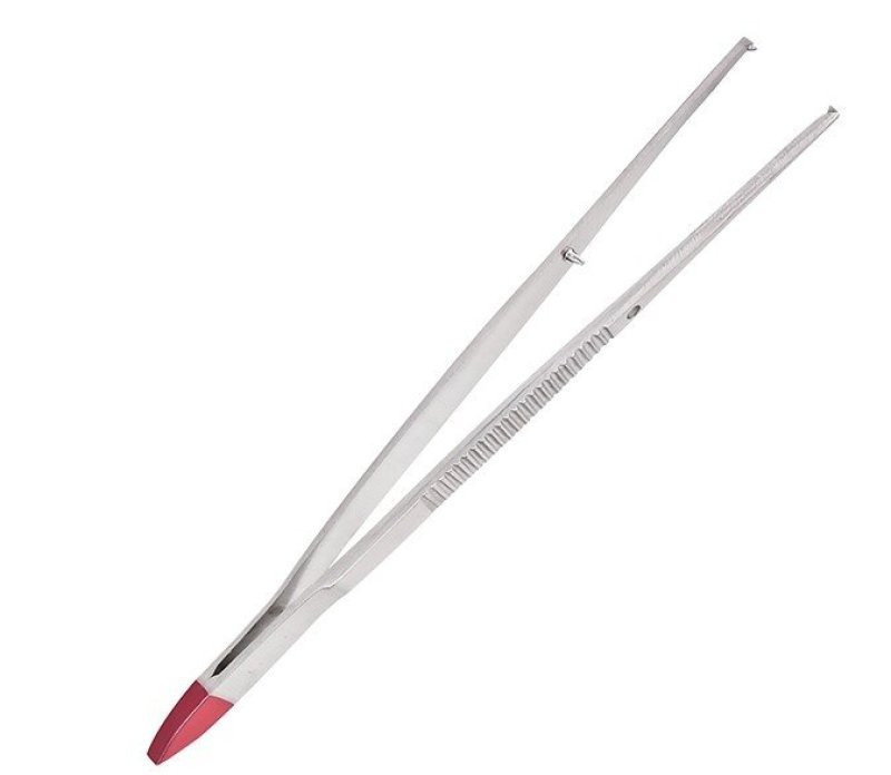 Surgical forceps - disposable. 15 cm, individually packaged in sterile packaging. Marked in red for easy identification from reusable instruments.